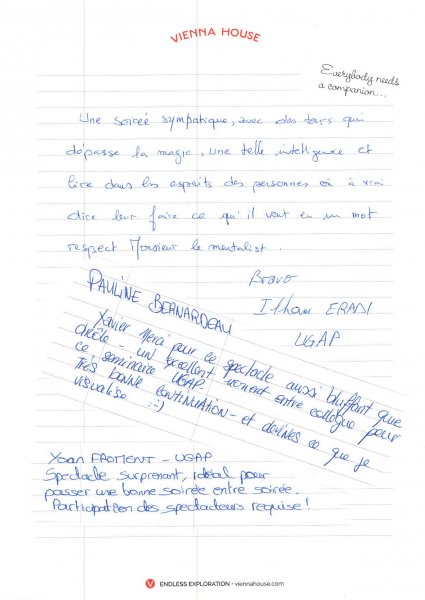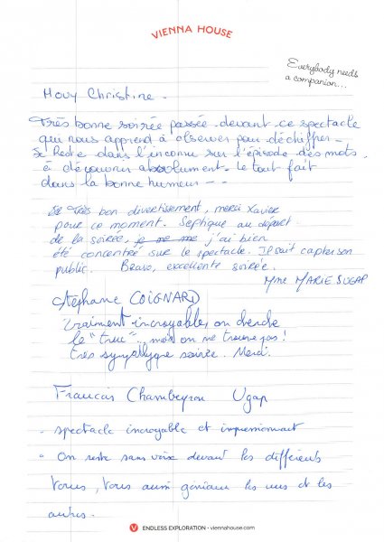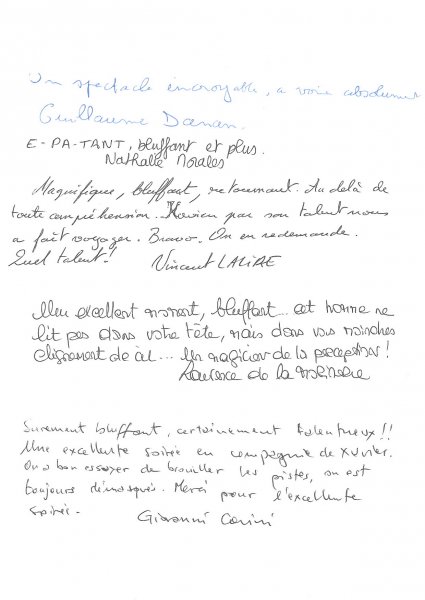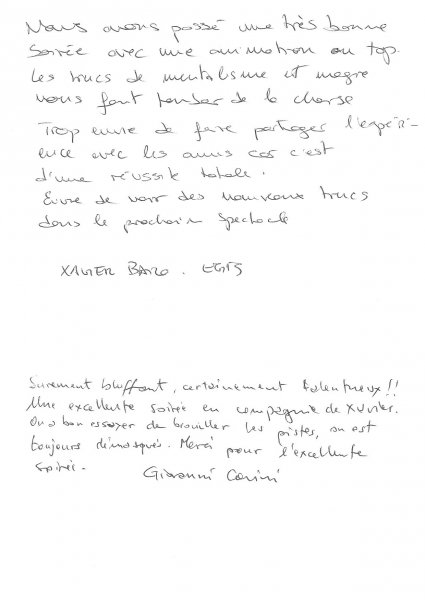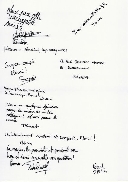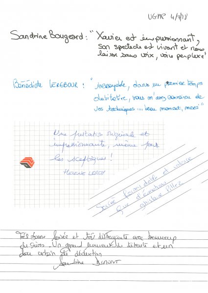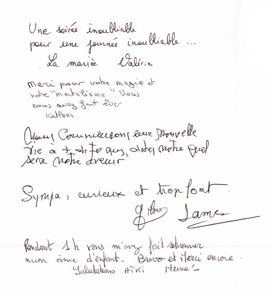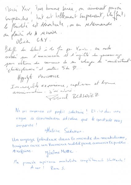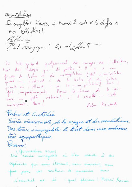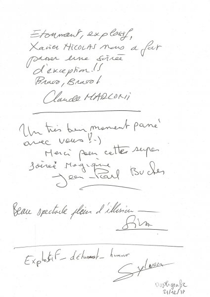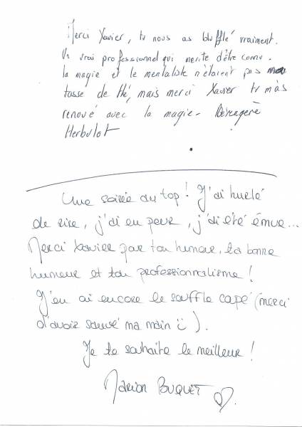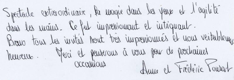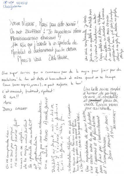 Magicien Mentaliste Xavier Nicolas www.magiciens.fr +33 6 13 23 45 85 Rechercher: Livre d'or Livre d’or soirées d’entreprise Livre d’or : Soirées exceptionnelles Livre d’or particuliers : Mariages Livre d’or particuliers : Anniversaires Livre d’or particuliers : Théâtre