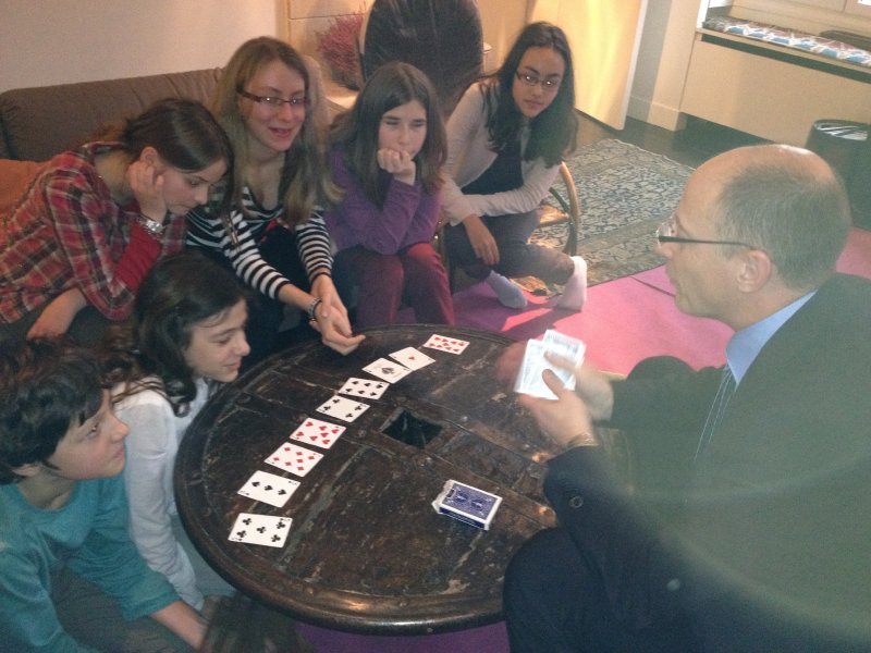 Mon programme du jour se composera de 20 minutes de spectacle de cabaret durant le déjeuner, puis une séance de 45 minutes qui mêlera close up et tours de cartes, mais aussi quelques expériences de mentalisme ainsi qu’une petite initiation pour que les enfants repartent avec quelques tours à montrer en rentrant chez eux.